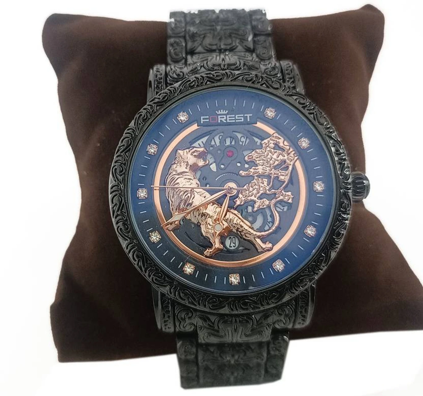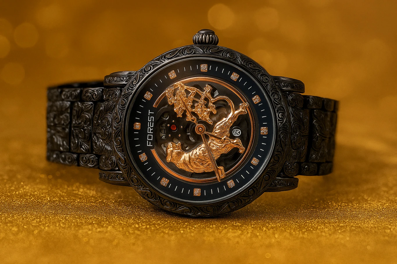 Luxury Lion Curved Golden Dial Bracelet Unisex Wrist Watch Analog Watch